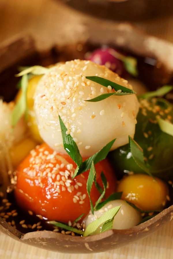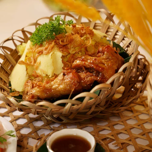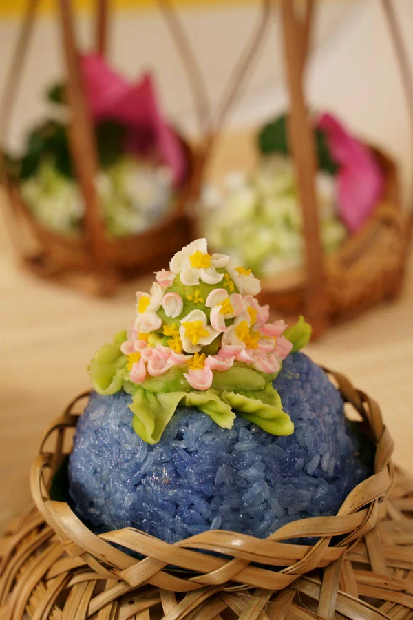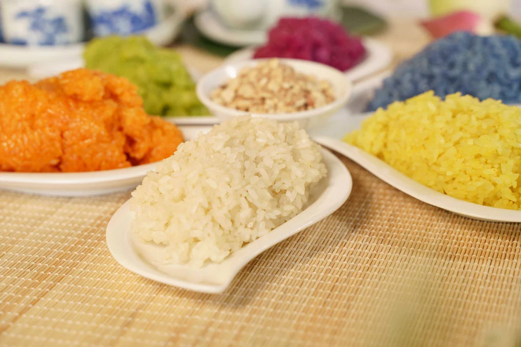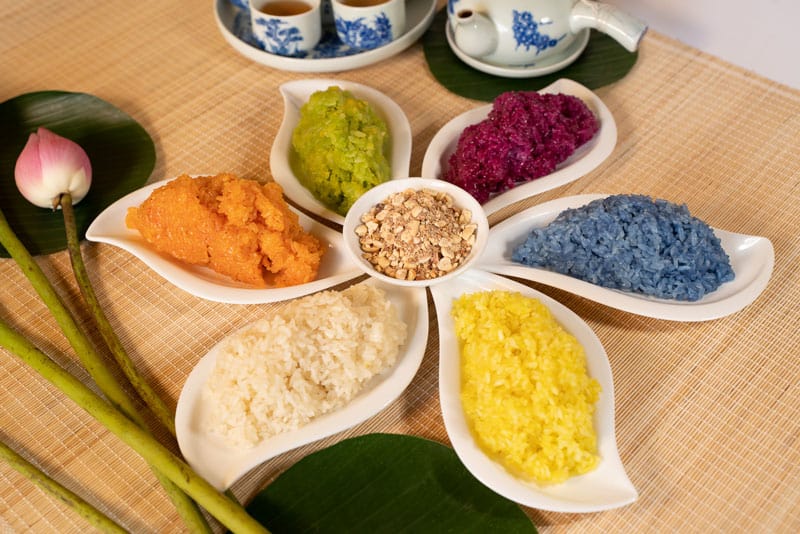 Một loại xôi nghệ thuật có các hình hoa làm từ đậu xanh, thường được dùng trong các dịp lễ quan trọng.