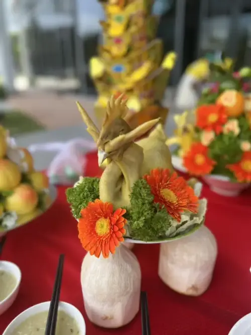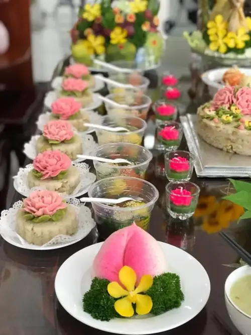Một loại xôi nghệ thuật có các hình hoa làm từ đậu xanh, thường được dùng trong các dịp lễ quan trọng.